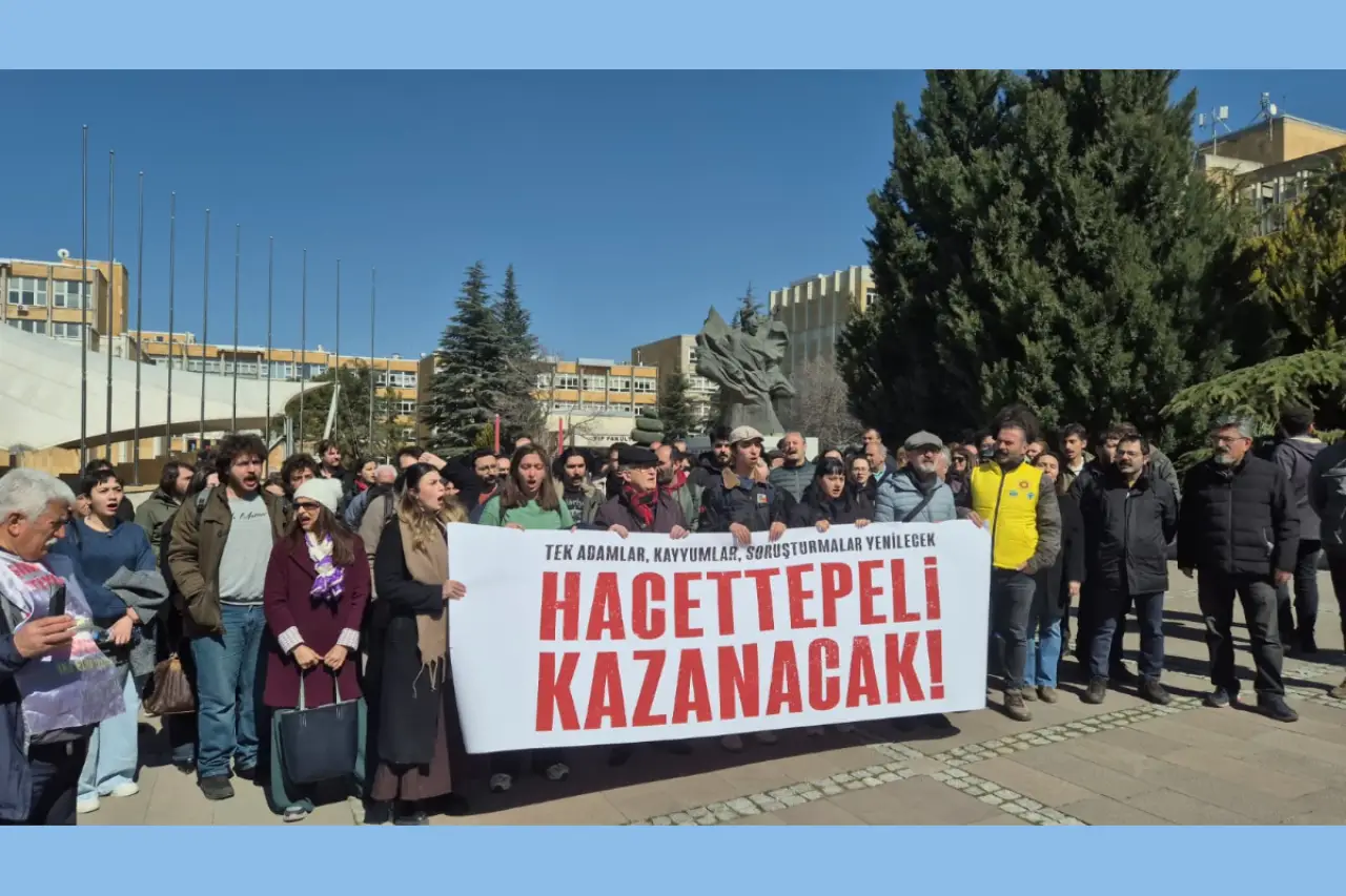 KESK Ankara Şubeler Platformu, DİSK Bölge Temsilciliği ve TMMOB İKK’nın çağrısıyla Sıhhiye Rektörlüğü önünde; Hacettepe Üniversitesi tarafından “19 Mart soruşturması” kapsamında okuldan uzaklaştırılan öğrencilerle dayanışma açıklaması yapıldı. Açıklamada, “Kanun, yasa tanımayan rektörlük; Anayasa’nın 42. maddesi ve uluslararası sözleşmelerle korunan temel bir insan hakkı olan eğitim hakkını engellemektedir” denildi. Açıklamanın ardından söz alan öğrenciler, nöbet eylemleriyle haksız cezaları protesto edeceklerini duyurdular.