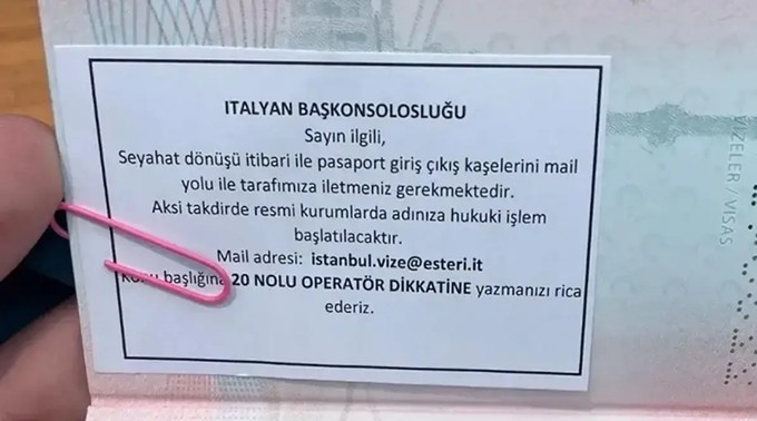 Uygulamaya göre vizeyi bu ülkelerden alan yolcuların, seyahatlerini tamamlayıp Türkiye’ye döndükten sonra pasaportlarındaki giriş ve çıkış mühürlerinin kopyalarını e-posta yoluyla ilgili konsolosluğa iletmesi gerekiyor.