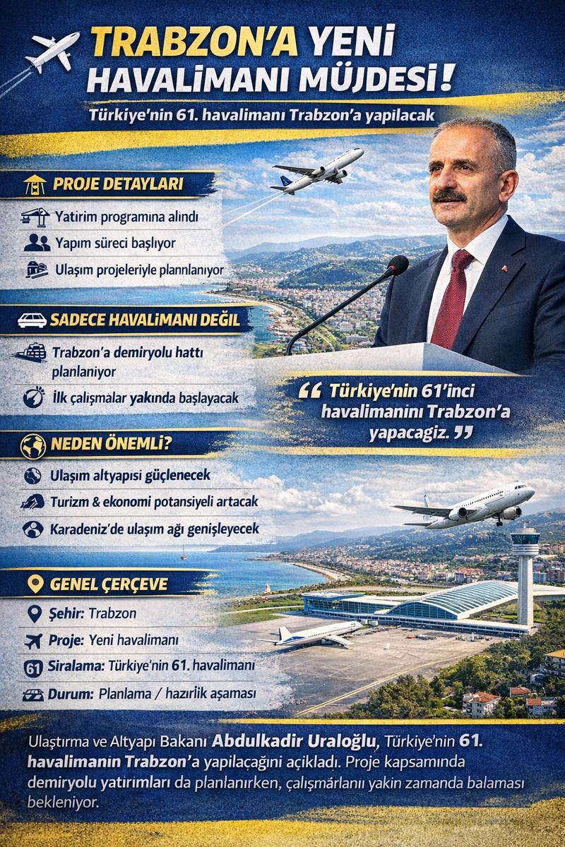 - Türkiye’nin 61. havalimanı Trabzon’a yapılacak
