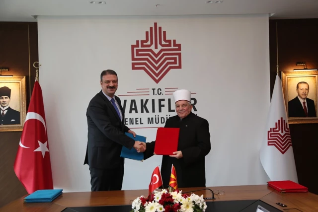 Ziyaret kapsamında, Kuzey Makedonya sınırları içerisinde bulunan Osmanlı emaneti vakıf eserlerinden Üsküp Hacı Balaban Camii ile Kalkandelen Alaca Camii’nin restorasyonlarına ilişkin iş birliği protokolü imzalandı.